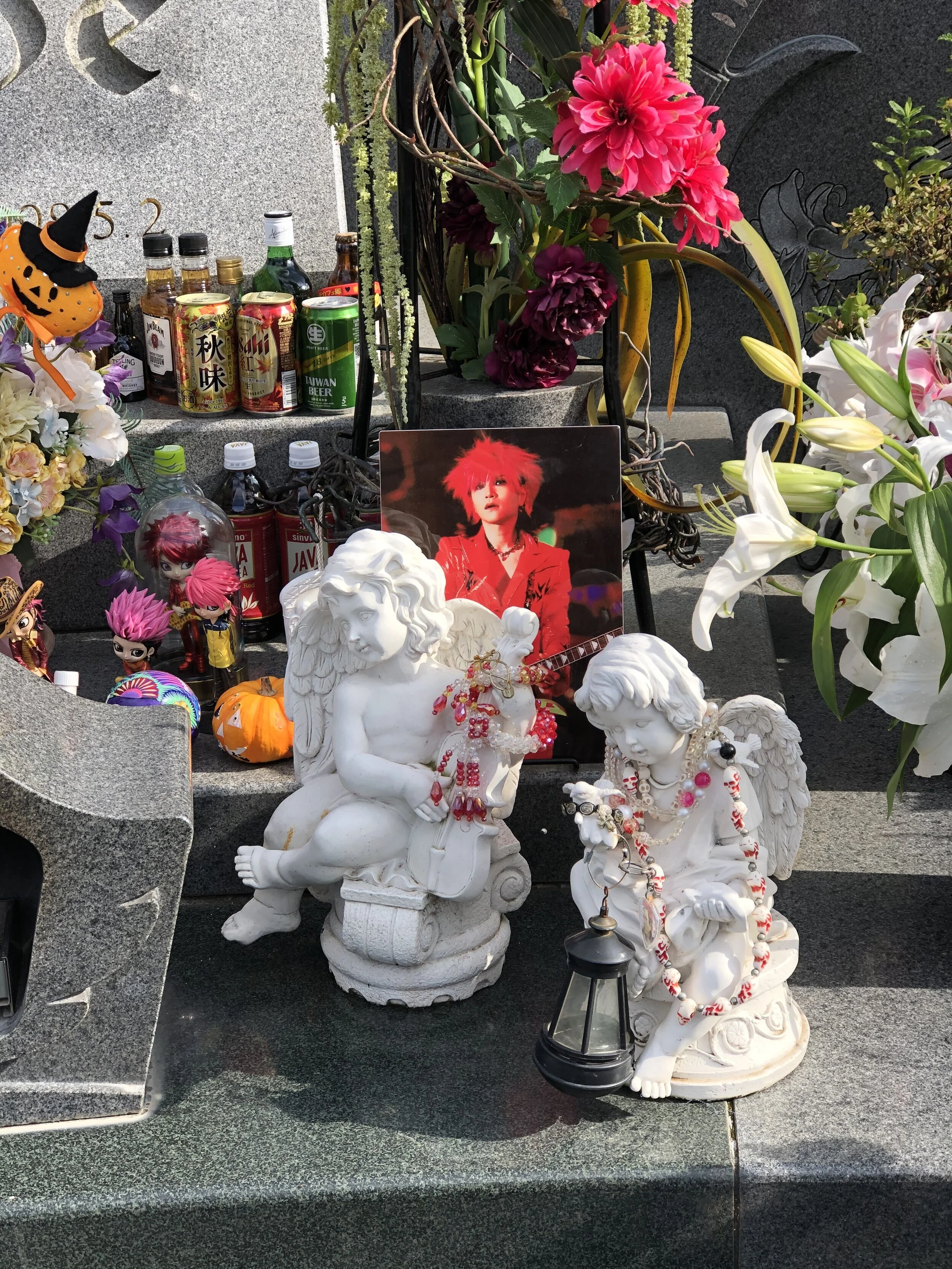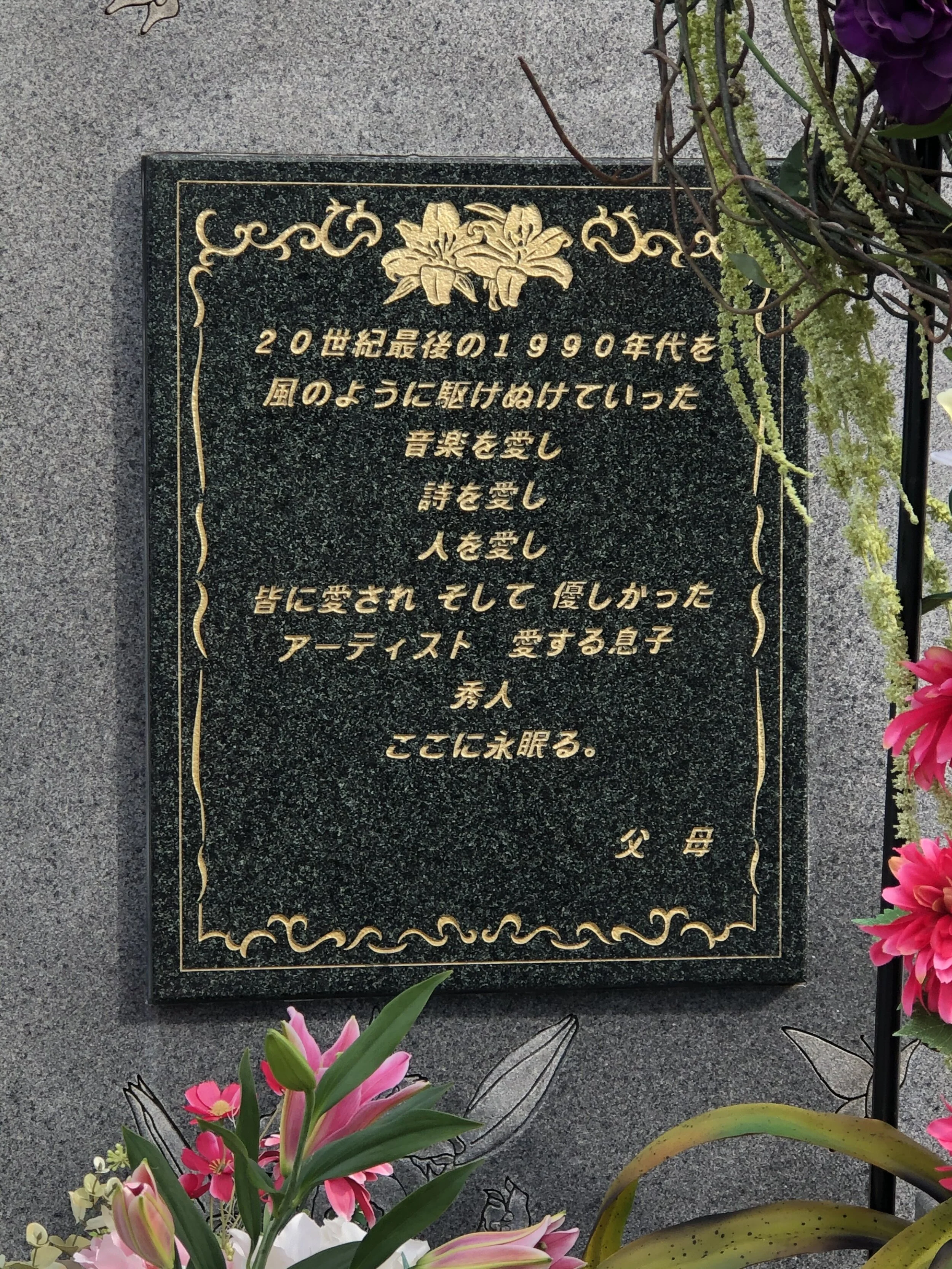 墓碑上的碑文还是挺让人感动的。在父母的眼中,终究是“愛する息子”吧。想到「步履不停」里老太太说:“应该没有比来看自己孩子的墓更让人难过的了吧”,不知道Hide的父母这些年来经常来这里是怎样的心情。