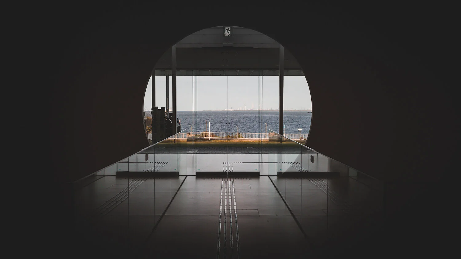 美术馆正对着海湾,主楼中间的旋转楼梯上去可以到达美术馆的天台,在这里可以看到美术馆的全貌。